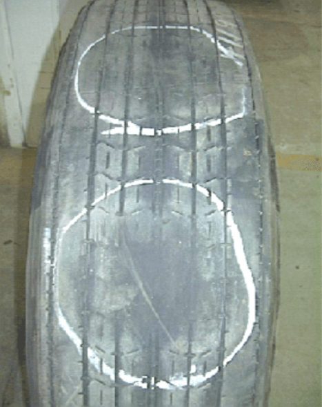 - Localized Spot of Excessive Wear Typically Found on Dual Trailer Tires